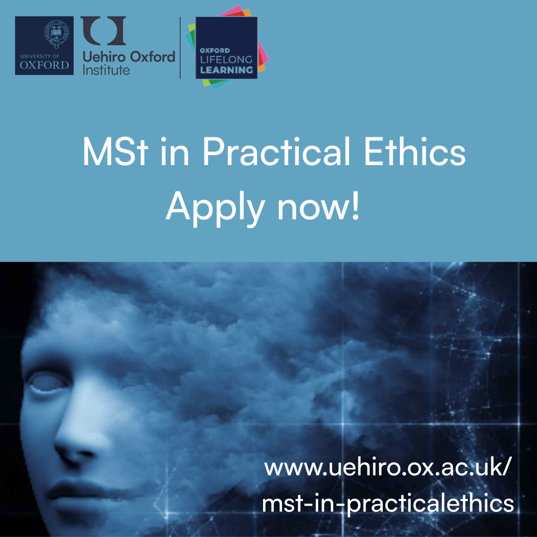Join this year’s cohort of MSt in Practical Ethics students – apply by 28th January to take advantage of funding opportunities. The MSt in Practical Ethics at the University of Oxford is designed for those who want to think carefully and rigorously about important ethical questions, while remaining firmly engaged with the real world. Ethics,